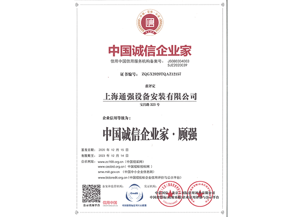 上海通強設備安裝有限公司注冊資金2000萬元,資產總量為100000萬元的專業設備安裝公司,公司專業從事工業與民用建筑的設備安裝、非標設備的制作、鋼結構制作安裝、中央空調系統的安裝,水電及管道的安裝。經過20多年艱苦創業現已成為一個具有國家二級安裝資質,獲得上海市“重合同,守信用”的施工單位。